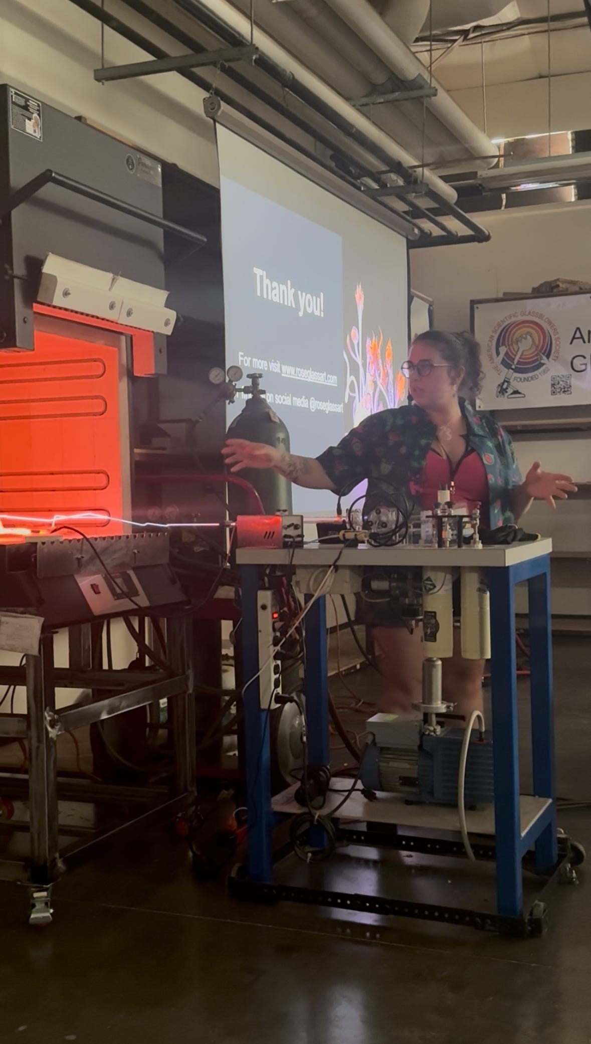 I got to see one of my favorite plasma artists Angie McHale aka @roseglassart do a demo filling one of her plasma figures. I also saw Jacob Fishman, Zoelle Nagib (who runs Lightwriters Neon in Chicago), and Arlo Fishman, a family of neon artists who performed and demoed a neon/family game show that was very unexpected and lovely. I also saw James Akers demo while waxing on about different types of neon bends and what his mentors would say if they saw what he was doing. It felt very Bob Ross, if Bob Ross had a torch and was bending glass instead of welding a paintbrush and palette knife.