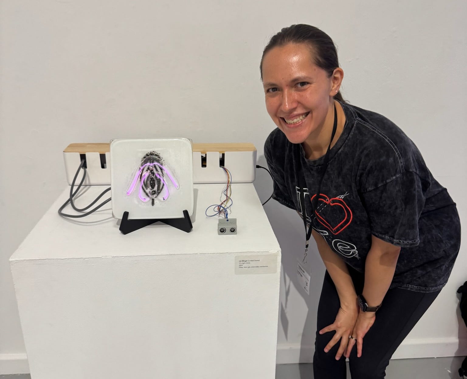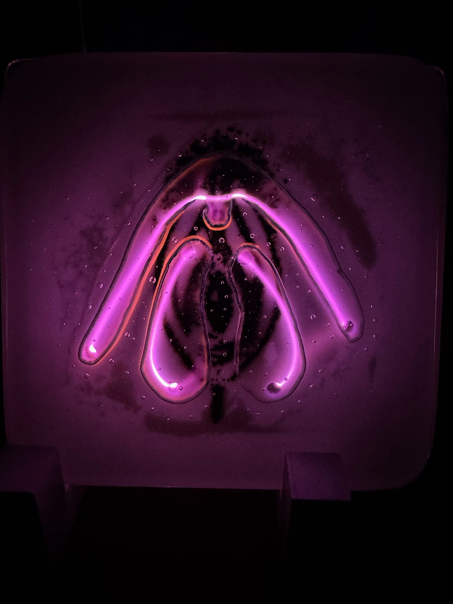 In preparation for the show, I learned the lesson that certain plasma pieces are more sensitive to heat than others. The krypton vulva I initially submitted for the show cracked during stress testing (yes I know there’s a joke in there somewhere). Luckily I had a neon version that the conference organizers approved in place of the krypton one.