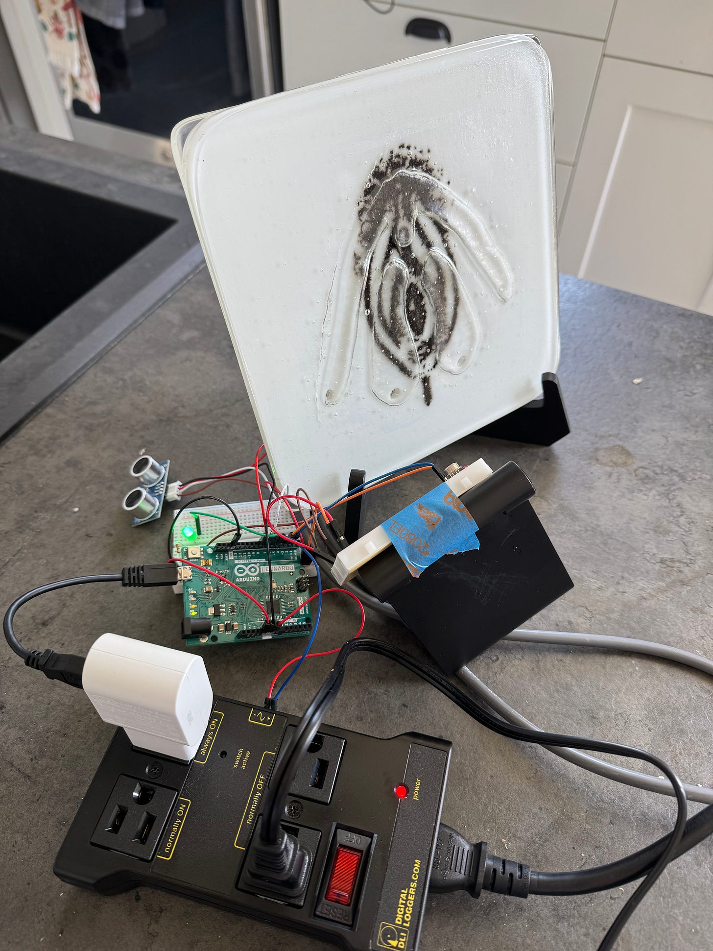Percy shared Amy Lemaire’s sensor controlled power setup, which I used as inspiration for my setup. I ended up doing something a little different because I basically wanted the piece to: